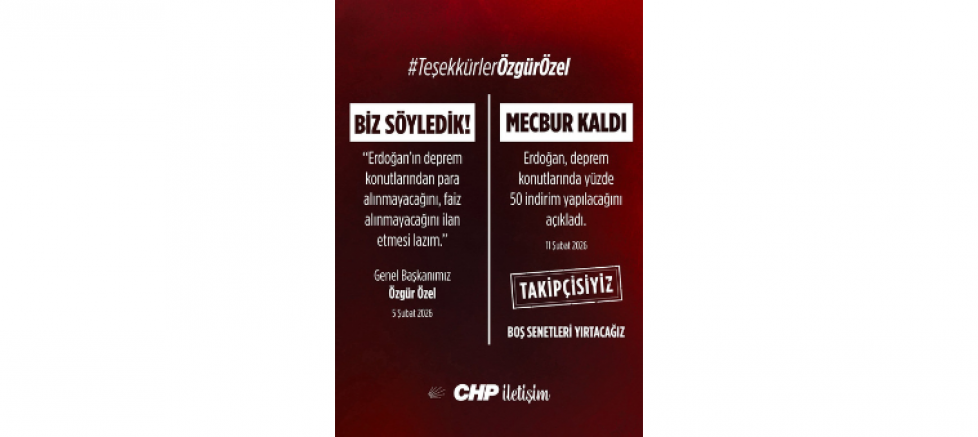 “Depremzedelerin sesi olduğunuz, haksızlığa karşı net bir duruş sergilediğiniz için minnettarız. Halkın yanında duran, mücadeleden geri adım atmayan liderliğinizle gurur duyuyoruz. İyi ki varsınız.”